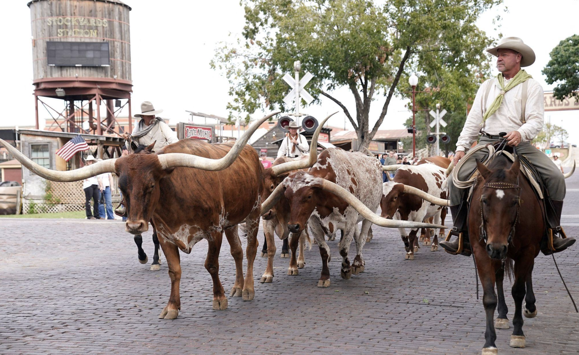 Step into the heart of Texas where real cowboys still drive longhorn cattle down the street—complete with Western charm, live music, and a true Old West atmosphere.